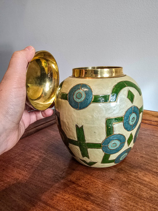 Vintage Mid-Century Indian Brass Cloisonne Urn