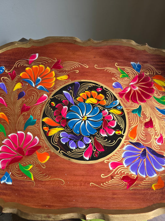Vintage Mid-century Chromex Serving Tray with Teak Handles