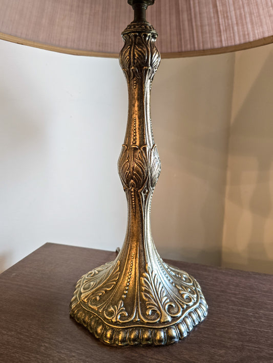 Antique Bronze Art Nouveau Table Lamps with Mauve Shades